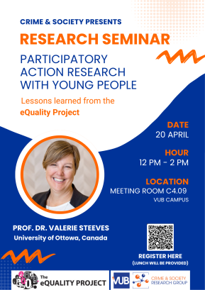 The Digital Criminology Working Group is excited to announce the following lunch seminar with Professor Dr. Valerie Steeves (University of Ottawa, Canada). The talk will discuss Participatory Action Research with young people: Lessons learned from the eQuality Project.